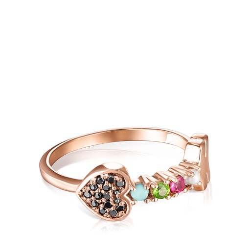 Heart Ring in Rose Silver Vermeil with multicolor Gemstones TOUS Very well made.