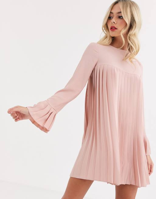 ASOS DESIGN Robe trap ze courte pliss e manches longues Rose Very well made.