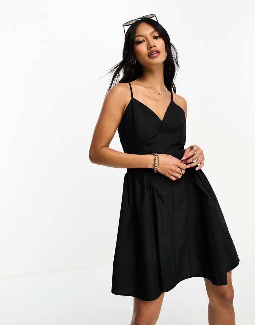 ASOS DESIGN Robe patineuse courte en coton avec taille tombante Noir Very well made.