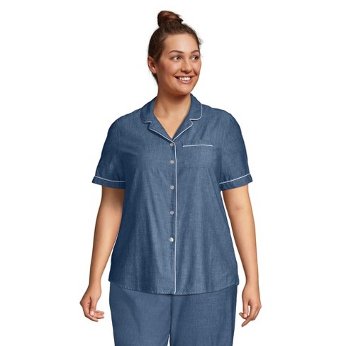 Lands End Women s Plus Size Short Sleeve Cotton Poplin Pajama Shirt 2x Medium Indigo Chambray Very well made.