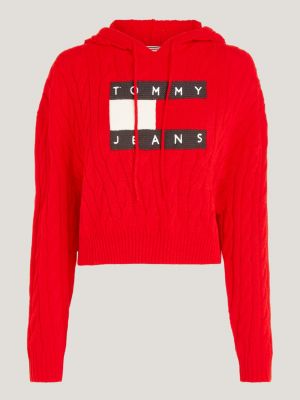 Cropped Fit Hoodie mit Zopfstrick und Flag Rot Tommy Hilfiger Very well made.
