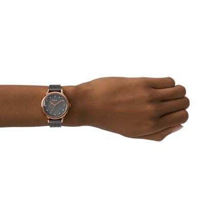 Fossil BQ3390 Laney Three Hand Smoke Stainless Steel Women s Mesh Watch Very well made.