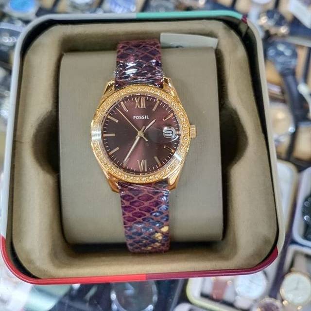 Fossil Scarlette Mini Three Hand Date Fig Leather Watch 32mm Very well made.