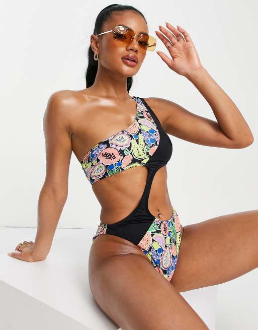 ASOS DESIGN Maillot 1 pi ce asym trique d coupes avec imprim Very well made.