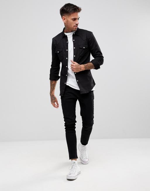 ASOS DESIGN Chemise western ajust e en jean Noir ASOS Very well made.