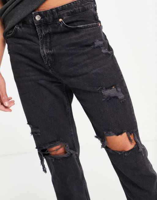 Pull Bear relaxed ripped jeans in black Very well made.