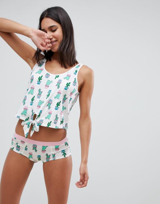 ASOS DESIGN Ensemble pyjama avec d bardeur et culotte motif cactus Very well made.