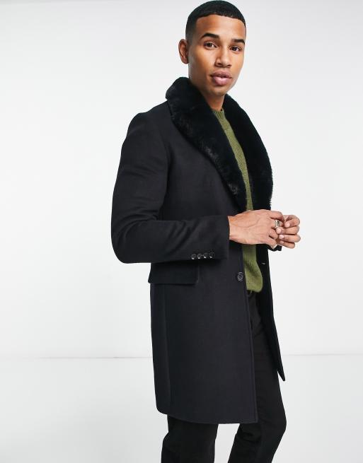 Gianni Feraud Premium Faux Fur Collar Double Breasted Overcoat Very well made.
