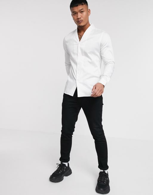 ASOS DESIGN Premium regular fit sateen smart shirt with shawl collar on white Very well made.